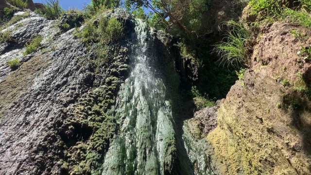 The hike itself is pretty easy. The hardest part is the walk to the trailhead. Once you get there, it’s pretty much a flat walk with quite a bit of tree cover to keep you shaded. It takes about 30-40 minutes one way to get to the falls. You need to cross four streams on your way, but the water is shallow and trial pioneers left rocks and logs laying across the streams to pass easily.